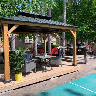 We also built a new deck under the ping-pong gazebo to make for a more level playing ground, added a railing at both ends, (to save chasing the balls everywhere and for safety), and – new for this year – purchased a new waterproof ping-pong table, which will be brought into play once the old one is at the end of its life span.